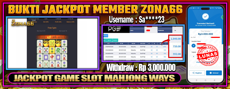 KEMENANGAN! MEMBER ZONA66 MERAIH JACKPOT PERMAINAN MAHJONG WAYS! 09 OCTOBER 2025