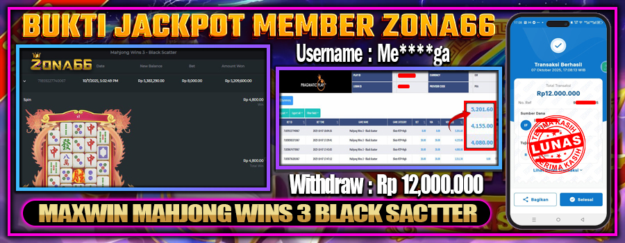KEMENANGAN! MEMBER ZONA66 MERAIH MAXWIN GAME MAHJONG WINS 3 BLACK SCATTER! 07 OCTOBER 2025