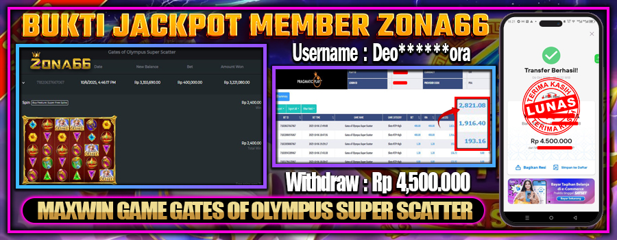 KEMENANGAN! MEMBER ZONA66 RAIH MAXWIN SLOT GATES of OLYPUS SUPER SCATTER! 06 OCTOBER 2025