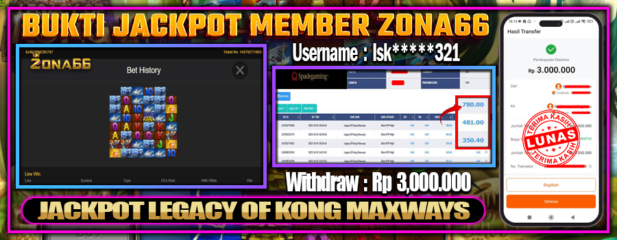 KEMENANGAN! MEMBER ZONA66 MERAIH JACKPOT LEGACY of KONG MAXWAYS! 07 OCTOBER 2025