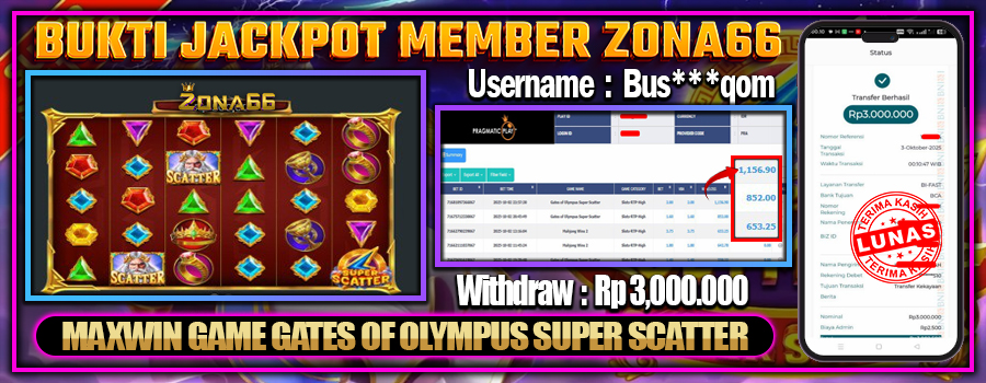 MENAKJUBKAN! MEMBER ZONA66 MERAIH MAXWIN GAME GATES of OLYMPUS SUPER SCATTER! 03 OCTOBER 2025