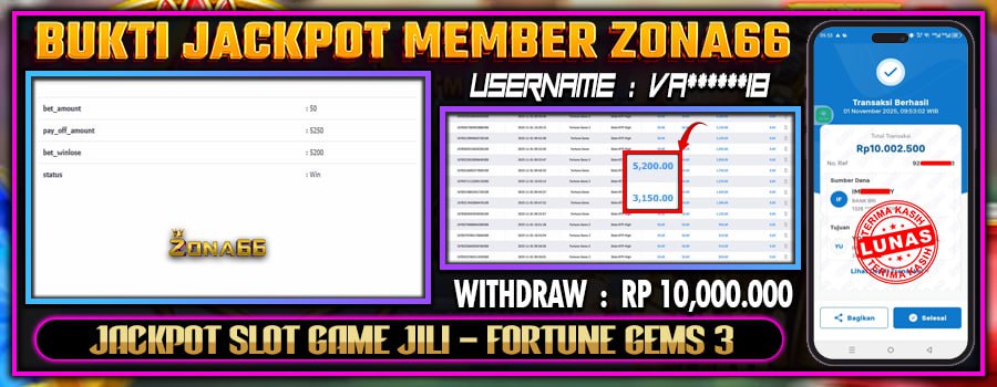KEMENANGAN! MEMBER ZONA66 MERAIH JACKPOT GAME LUCKY NEKO! 01 NOVEMBER 2025