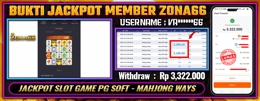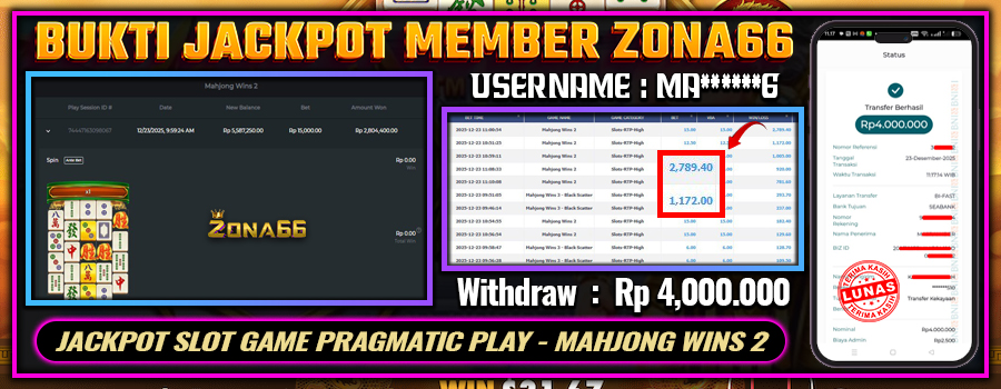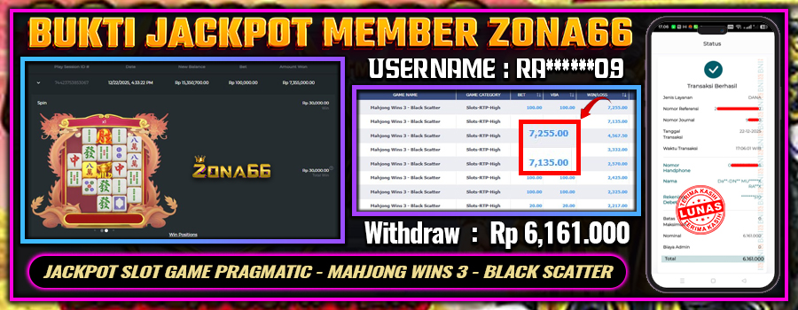 KEMENANGAN! MEMBER ZONA66 MERAIH MAXWIN GAME MAHJONG WINS 3 – BLACK SCATTER! 23 DECEMBER 2025