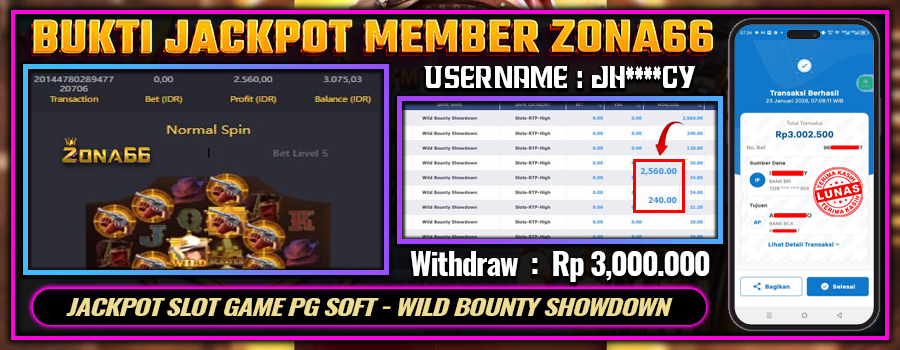 KEMENANGAN! MEMBER ZONA66 MERAIH MAXWIN GAME PG SOFT – WILD BOUNTY SHOWDOWN! 23 JANUARY 2026