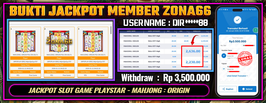 KEMENANGAN! MEMBER ZONA66 MERAIH MAXWIN GAME PLAYSTAR – MAHJONG : ORIGIN! 22 JANUARY 2026