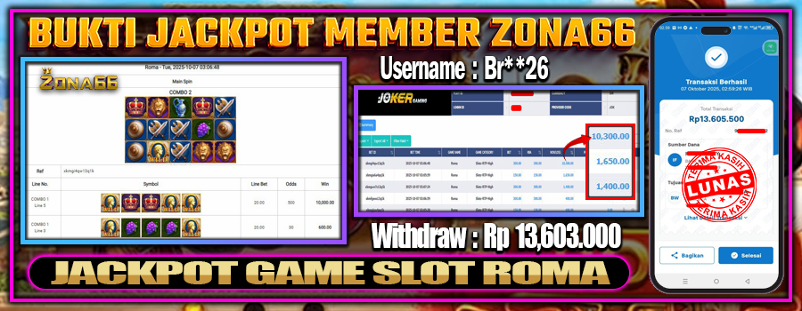 KEMENANGAN! MEMBER ZONA66 MERAIH JACKPOT GAME SLOT ROMA! 07 OCTOBER 2025