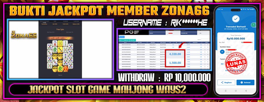 KEMENANGAN! MEMBER ZONA66 MERAIH JACKPOT SLOT MAHJONG WAYS 2! 26 OCTOBER 2025