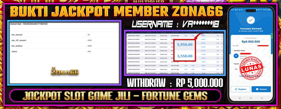 KEMENANGAN! MEMBER ZONA66 MERAIH JACKPOT GAME FORTUNE GEMS! 25 OCTOBER 2025