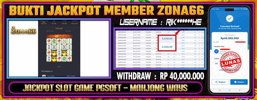 KEMENANGAN! MEMBER ZONA66 RAIH JACKPOT MAHJONG WAYS! 06 OCTOBER 2025