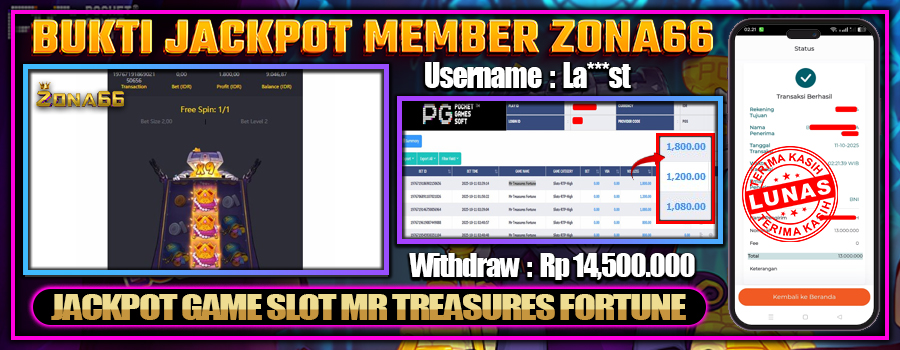 KEMENANGAN! MEMBER ZONA66 MERAIH JACKPOT Mr TREASURES FORTUNE! 11 OCTOBER 2025