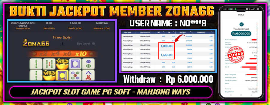 KEMENANGAN! MEMBER ZONA66 MERAIH MAXWIN GAME PG SOFT – MAHJONG WAYS ! 07 JANUARY 2026