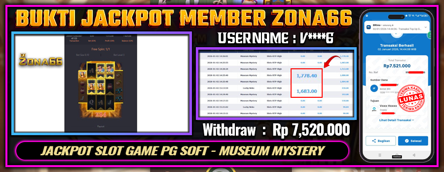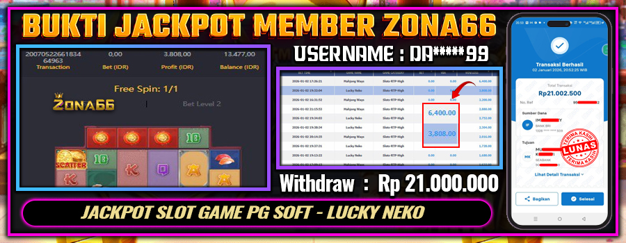 KEMENANGAN! MEMBER ZONA66 MERAIH MAXWIN GAME PG SOFT – LUCKY NEKO! 02 JANUARY 2026