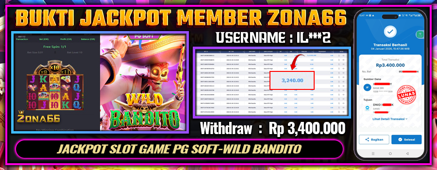 KEMENANGAN! MEMBER ZONA66 MERAIH MAXWIN GAME PG SOFT – WILD BANDITO! 04 JANUARY 2026