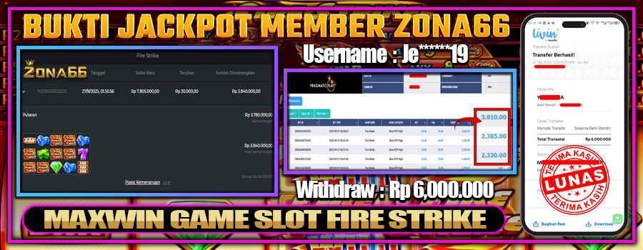 MENAKJUBKAN! MEMBER ZONA66 MERAIH MAXWIN GAME FIRE STRIKE! 27 SEPTEMBER 2025