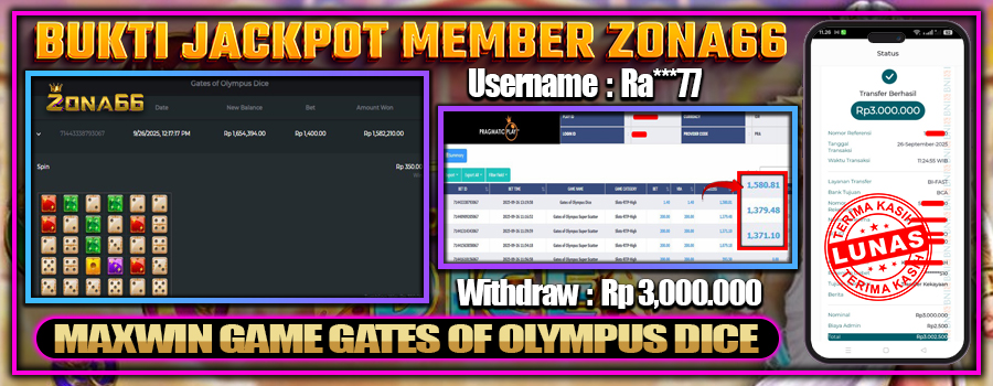 MENAKJUBKAN! MEMBER ZONA66 MERAIH MAXWIN GAME GATES of OLYMPUS DICE! 26 SEPTEMBER 2025