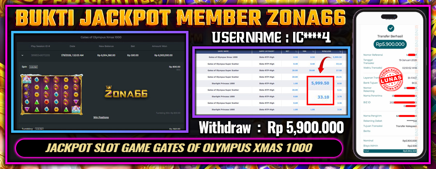 KEMENANGAN! MEMBER ZONA66 MERAIH MAXWIN GAME PRAGMATIC PLAY – GATES OF OLYMPUS XMAS 1000! 23 JANUARY 2026