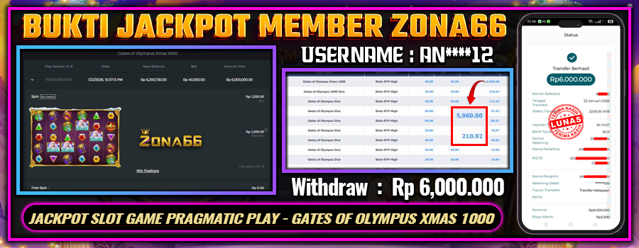 KEMENANGAN! MEMBER ZONA66 MERAIH MAXWIN GAME PRAGMATIC PLAY – GATES OF OLYMPUS XMAS 1000! 23 JANUARY 2026