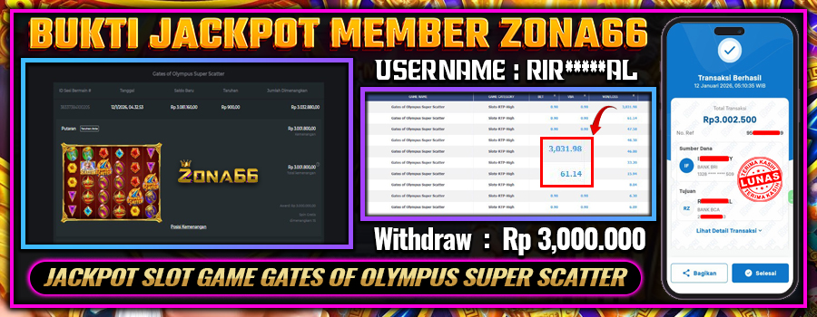 Kami ingin mengucapkan SELAMAT kepada para member setia ZONA66 yang berhasil meraih kemenangan luar biasa! 💰🔥 Keberuntungan dan strategi hebat kalian telah membawa hasil yang memuaskan. Salah satu member setia dengan User ID : RIR*****AL berhasil mendapatkan kemenangan besar di PRAGMATIC PLAY permainan GATES OF OLYMPUS SUPER SCATTER dengan total kemenangan mencapai Rp 3.000.000++! 😍💸
