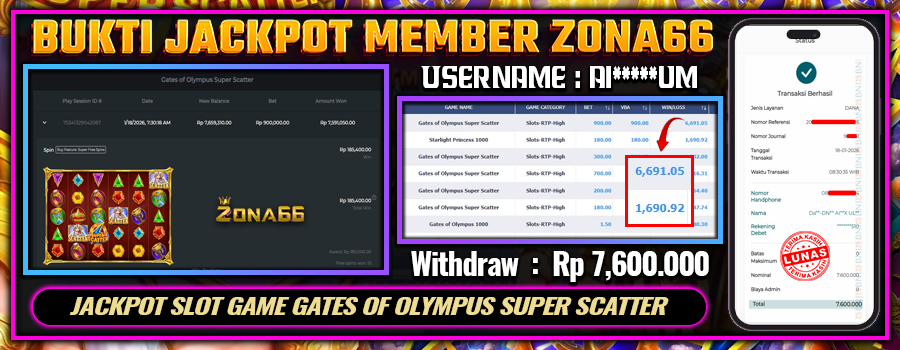 Kami ingin mengucapkan SELAMAT kepada para member setia ZONA66 yang berhasil meraih kemenangan luar biasa! 💰🔥 Keberuntungan dan strategi hebat kalian telah membawa hasil yang memuaskan. Salah satu member setia dengan User ID : AI****UM berhasil mendapatkan kemenangan besar di PRAGMATIC PLAY permainan GATES OF OLYMPUS SUPER SCATTER dengan total kemenangan mencapai Rp 7.600.000++! 😍💸