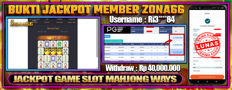 Kami ingin mengucapkan SELAMAT kepada para member setia ZONA66 yang berhasil meraih kemenangan luar biasa! 💰🔥 Keberuntungan dan strategi hebat kalian telah membawa hasil yang memuaskan. Salah satu member setia dengan User ID : Ri3****84 berhasil mendapatkan kemenangan besar di PG SOFT permainan MAHJONG WAYS dengan total kemenangan mencapai Rp 40.000.000++! 😍💸