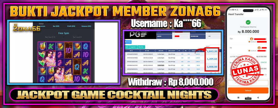 MENAKJUBKAN! MEMBER ZONA66 MERAIH JACKPOT GAME COCKTAIL NIGHTS! 24 SEPTEMBER 2025