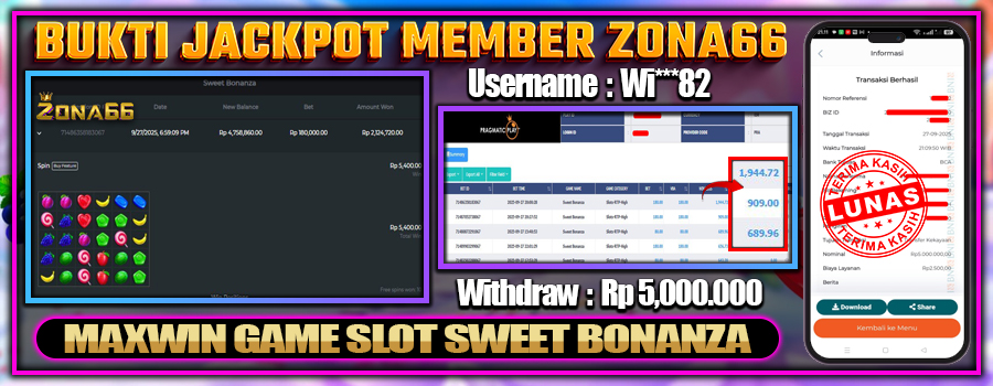 Kemenangan besar ini membuktikan bahwa di ZONA66, keberuntungan bisa datang kapan saja dan kepada siapa saja. Sensasi permainan yang seru, peluang yang besar, dan keberuntungan yang berpihak adalah kombinasi sempurna yang menjadikan ZONA66 tempat terbaik untuk meraih kemenangan impian.