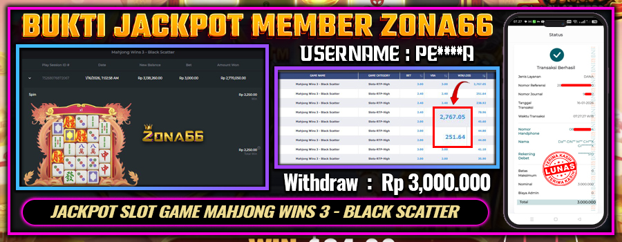 KEMENANGAN! MEMBER ZONA66 MERAIH MAXWIN GAME PRAGMATIC PLAY – MAHJONG WINS 3 – BLACK SCATTER! 16 JANUARY 2026