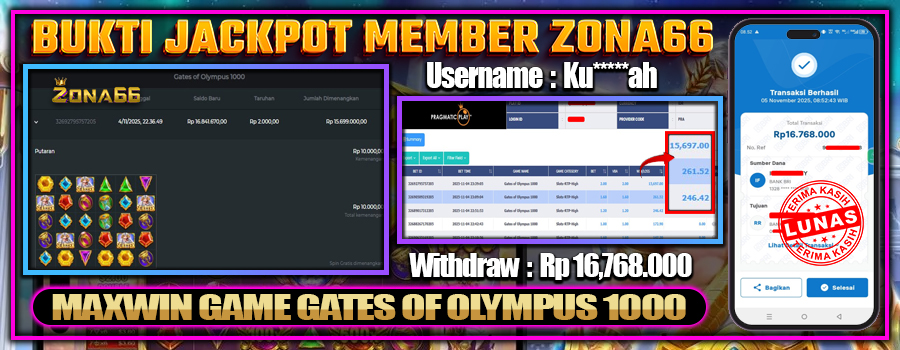 KEMENANGAN! MEMBER ZONA66 MERAIH MAXWIN GATES of OLYMPUS 1000! 05 NOVEMBER 2025