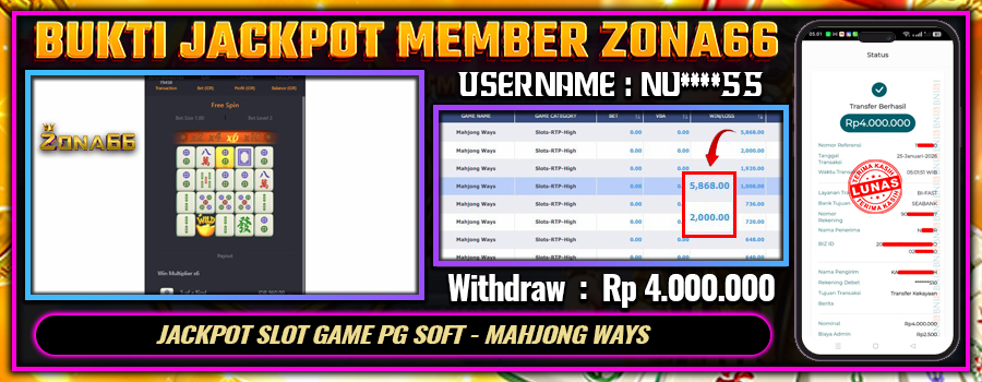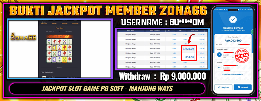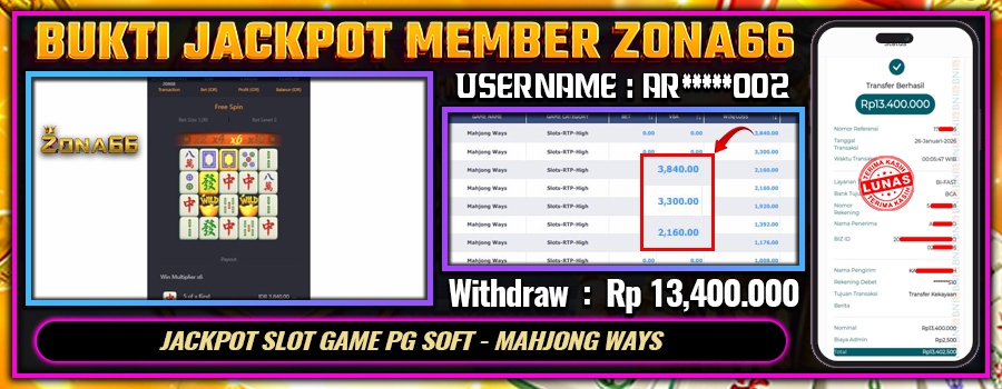 KEMENANGAN! MEMBER ZONA66 MERAIH MAXWIN GAME PG SOFT – MAHJONG WAYS! 27 JANUARY 2026