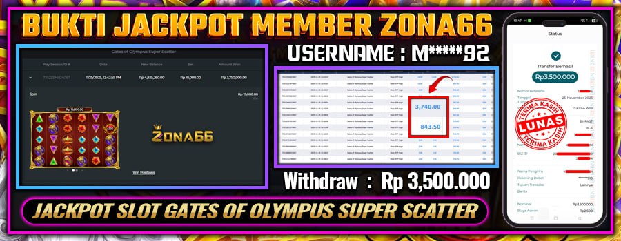 KEMENANGAN! MEMBER ZONA66 MERAIH MAXWIN GATES of OLYMPUS SUPER SCATTER! 27 NOVEMBER 2025