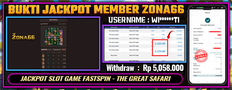 KEMENANGAN! MEMBER ZONA66 MERAIH MAXWIN GAME FASTSPIN – THE GREAT SAFARI! 07 JANUARY 2026