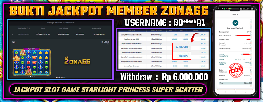 KEMENANGAN! MEMBER ZONA66 MERAIH MAXWIN GAME PRAGMATIC PLAY – STARLIGHT PRINCESS SUPER SCATTER! 05 JANUARY 2026