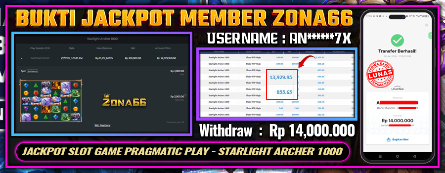 KEMENANGAN! MEMBER ZONA66 MERAIH MAXWIN GAME PRAGMATIC PLAY – GATES OF OLYMPUS 1000! 03 JANUARY 2026